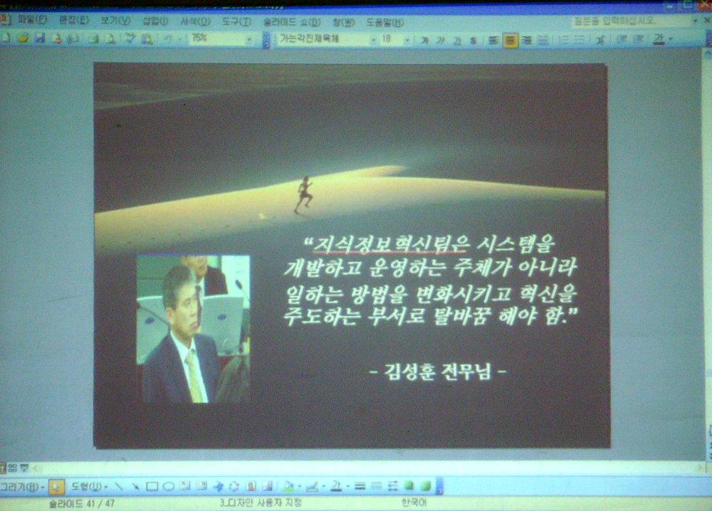 89 [제80회]프로젝트 변화관리 및 일하는 방법의 혁신 -김형식 수석 특강 2007-11-22 52 3620