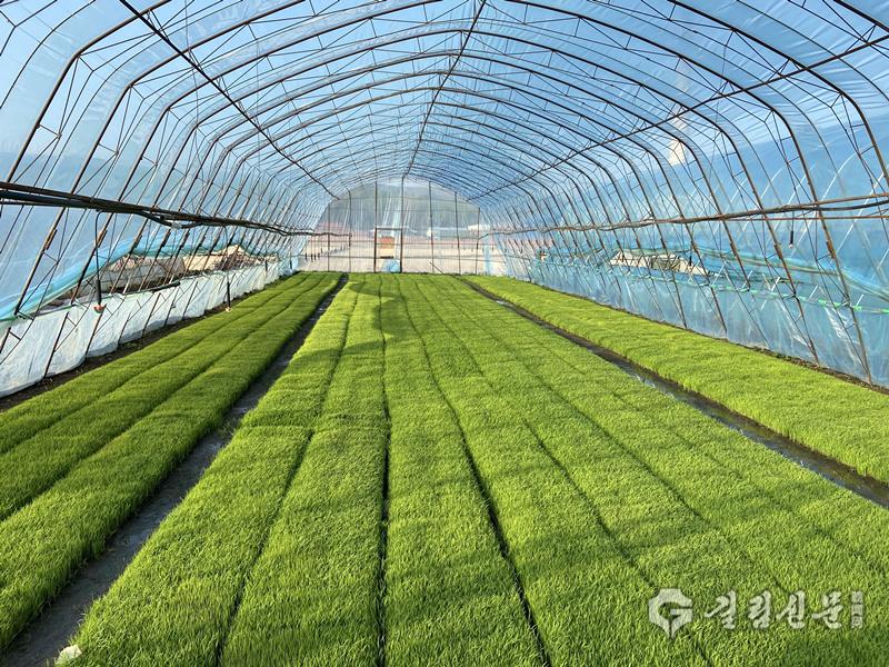 농업기술일군들은 재배호들이 육묘하우스에서 저온과 광선 부족, 일교 차이, 토양 염기성분 증가 등 원인으로 발생하는 립고병과 청고병 등 병해를 예방하고 제때에 통풍을 잘하며 농약과 비료를 잘 사용할 것을 건의했다. 사진은 룡정시 지신향 공농촌의 비닐하우스에서 한창 건실하게 자라고 있는 벼모의 모습이다.