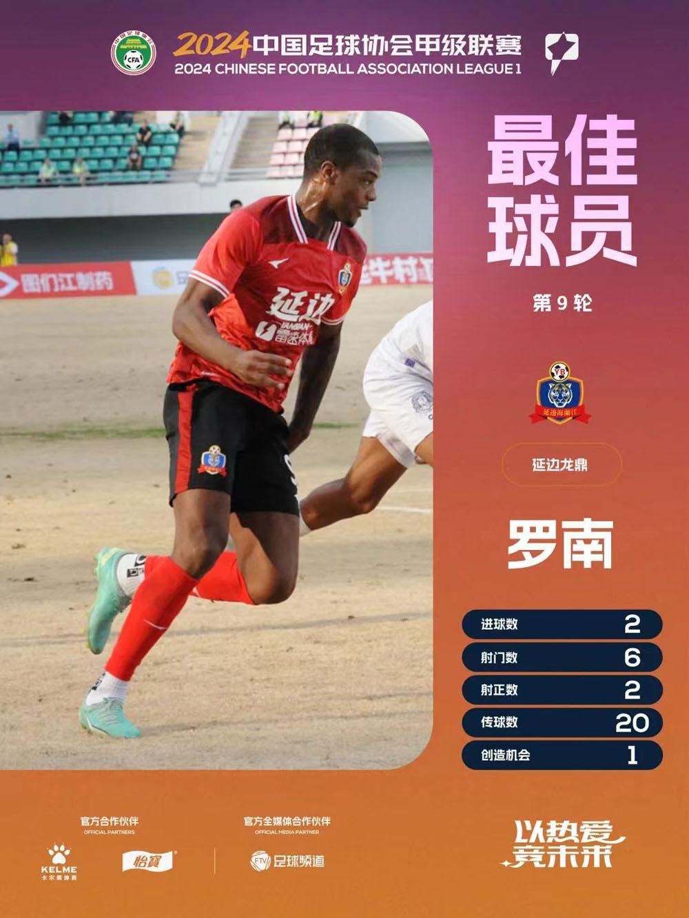 연변팀의 로난이 제9라운드 최우수 선수에 당선되였다.