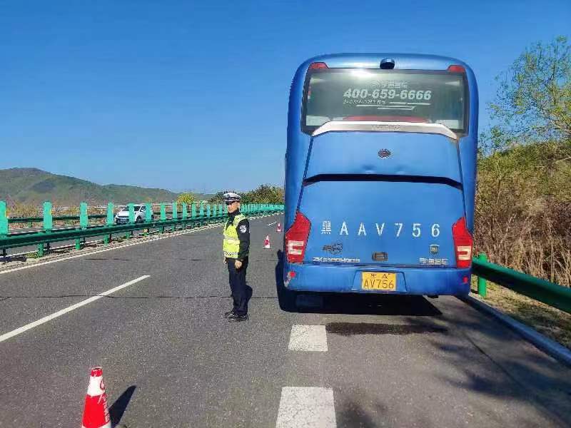 —길림성고속도로 교통경찰, 대형뻐스 타이어 폭발사고 신속히 해결