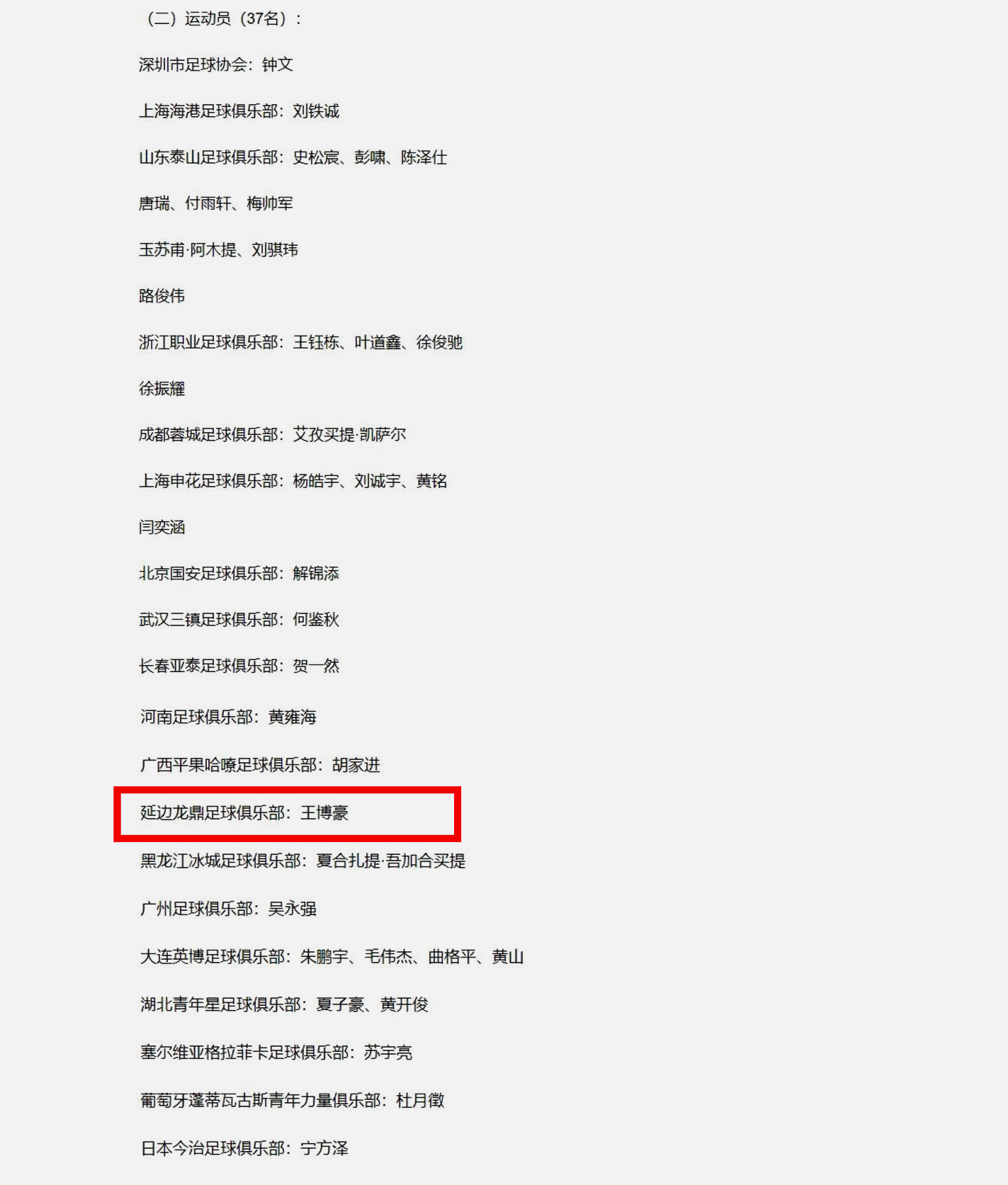 중국축구협회가 발표한 2005년령대 남자축구 소집 명단에 연변팀의 왕박호가 이름을 올렸다.