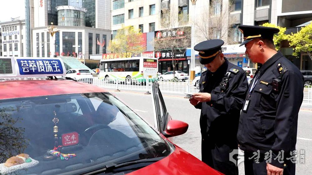 교통운수집법인원들이 시내 택씨를 정돈하고 있다.
