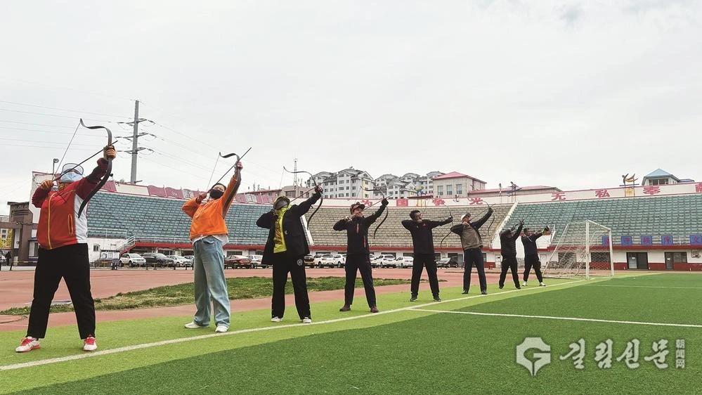 운동선수들이 전통활쏘기 련습을 진행하고 있다.